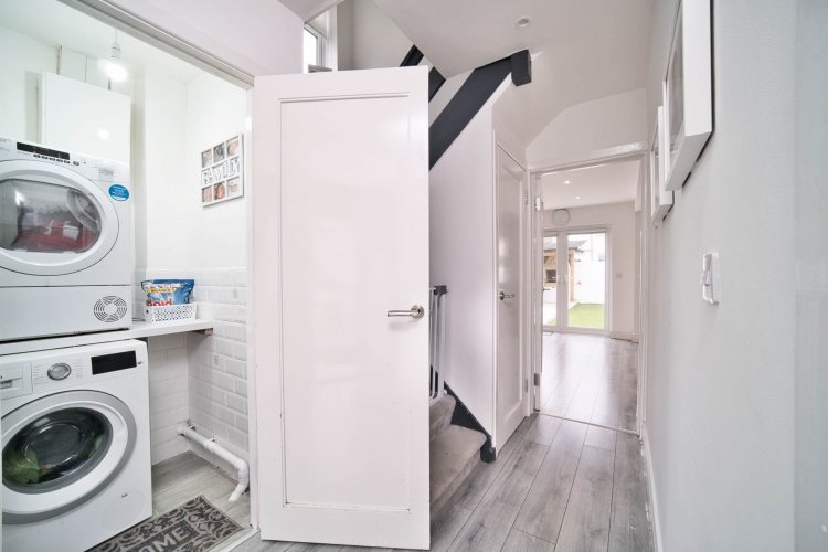 Utility/Storage area 1.2m 1.06m Tiled flooring, plumbed for washing machine and light fitting.