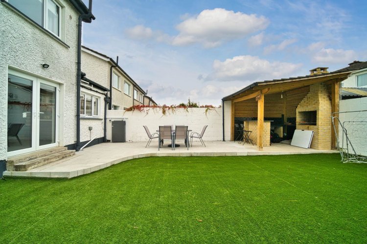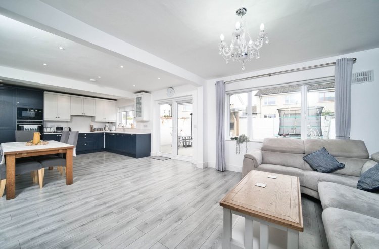 • Coonan Property are proud to present this exceptional 4-bedroom family residence, fully refurbished to an outstanding standard and now boasting an impressive A3 BER, ideally positioned in a mature and highly sought-after development • Extending to approx. 133 sq.m, the accommodation includes an entrance hall with porch, living room, open plan kitchen/dining area, playroom, ground floor w.c., four bedrooms including master ensuite, and a main bathroom • Presented in immaculate turnkey condition, featuring a sleek contemporary kitchen with premium appliances, elegant bathrooms, underfloor heating, 20 solar PV panels with 10kw battery and an energy-efficient condensing gas boiler • Enjoys a sun-drenched south-west facing rear garden, complete with a stylish covered BBQ and bar area • Features an attractive cobble-locked front driveway offering ample off-street parking • Situated in a peaceful cul-de-sac within walking distance of excellent local amenities including primary and secondary schools, sports clubs, shops such as Eurospar, Aldi, Lidl, and Leixlip Village • Perfectly located for commuters with Louisa Bridge train station, bus routes, and easy access to the M4 motorway providing a smooth connection to Dublin City, the M50, and beyond • A truly standout modern home in one of Leixlip's most established and desirable developments