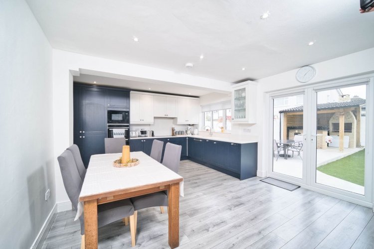 Items Included in sale: Double oven, microwave, hob, extractor fan, dishwasher, fridge-freezer, light fittings, curtains and blinds.