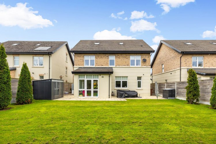 • Coonan Property proudly presents this exceptional four-bedroom detached residence, a home of distinction within the prestigious Rokeby Park development • Offering generously proportioned and beautifully balanced accommodation, the property comprises a welcoming entrance hall, formal living room, lounge/TV room, impressive open-plan kitchen and dining area, guest W.C., and four spacious double bedrooms including two luxurious en suites and a stylish main bathroom • Immaculately presented throughout, featuring elegant bespoke cabinetry, wood panelling, stylish bathroom suites and a sleek contemporary kitchen finished to the highest standards • Boasting an A2 energy rating, complemented by an Air-to-Water heat pump system, ensuring comfort and energy efficiency • Expansive attic space offering excellent potential for conversion to additional living or recreational accommodation • Set within a large south-facing rear garden, featuring a sun-drenched patio, manicured lawn, and mature trees that provide both beauty and privacy • Nestled within one of Lucan's most coveted developments, renowned for its beautifully landscaped open green areas, mature plantings and family friendly environment • Ideally located within walking distance of St. Catherine's Park and just minutes from Lucan Village, with its array of cafés, restaurants, shops and bars