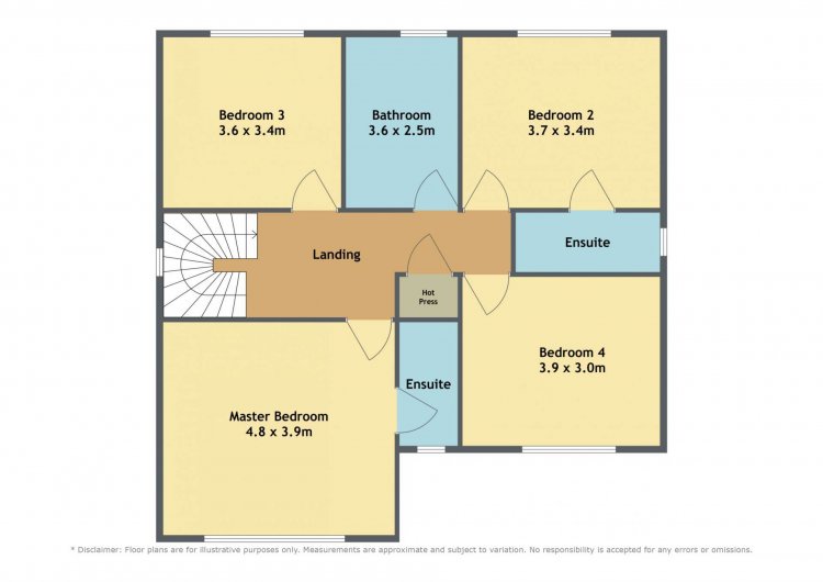 Ensuite 1.5m x 2.38m Tiled flooring, semi tiled wall, shower cubicle, w.c, w.h.b., vertical heated towel rail, recessed lights and underfloor heating.