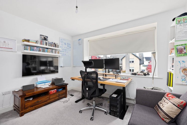 Bedroom 4 3.1m x 3.71m Overlooking front garden Carpet, fitted wardrobes, blinds and light fitting.