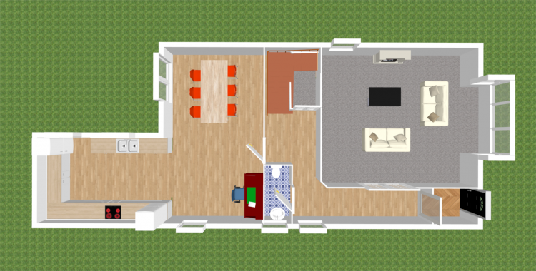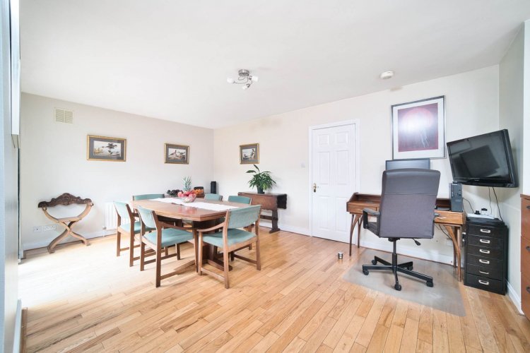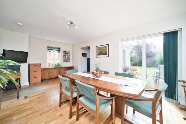 Dining 3.67m x 6m Solid oak flooring, light fitting, sliding door leading onto garden and archway leading into kitchen. Space for a lounge area.