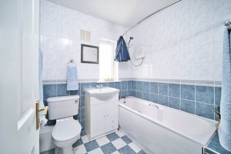 Bathroom 1.97m x 2.02m Fully tiled, bath, w.c., w.h.b with built in vanity unit, Triton electric shower.