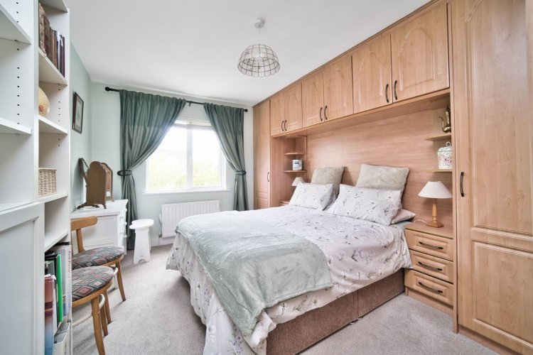 Bedroom 2 4.58m x 2.85m Overlooking front Laminate floors, fitted wardrobes, curtains, blinds and light fittings.