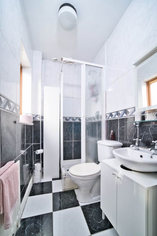 Bathroom 1.66m x 1.87m Fully tiled, bath with shower screen w.c., w.h.b., shaving light, fitted mirror, light fitting and extractor fan.