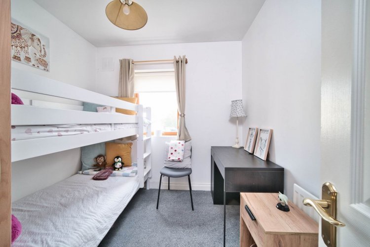 Bedroom 3 2.73m x 2.55m Carpet, fitted wardrobes, light fitting, curtains and blinds.